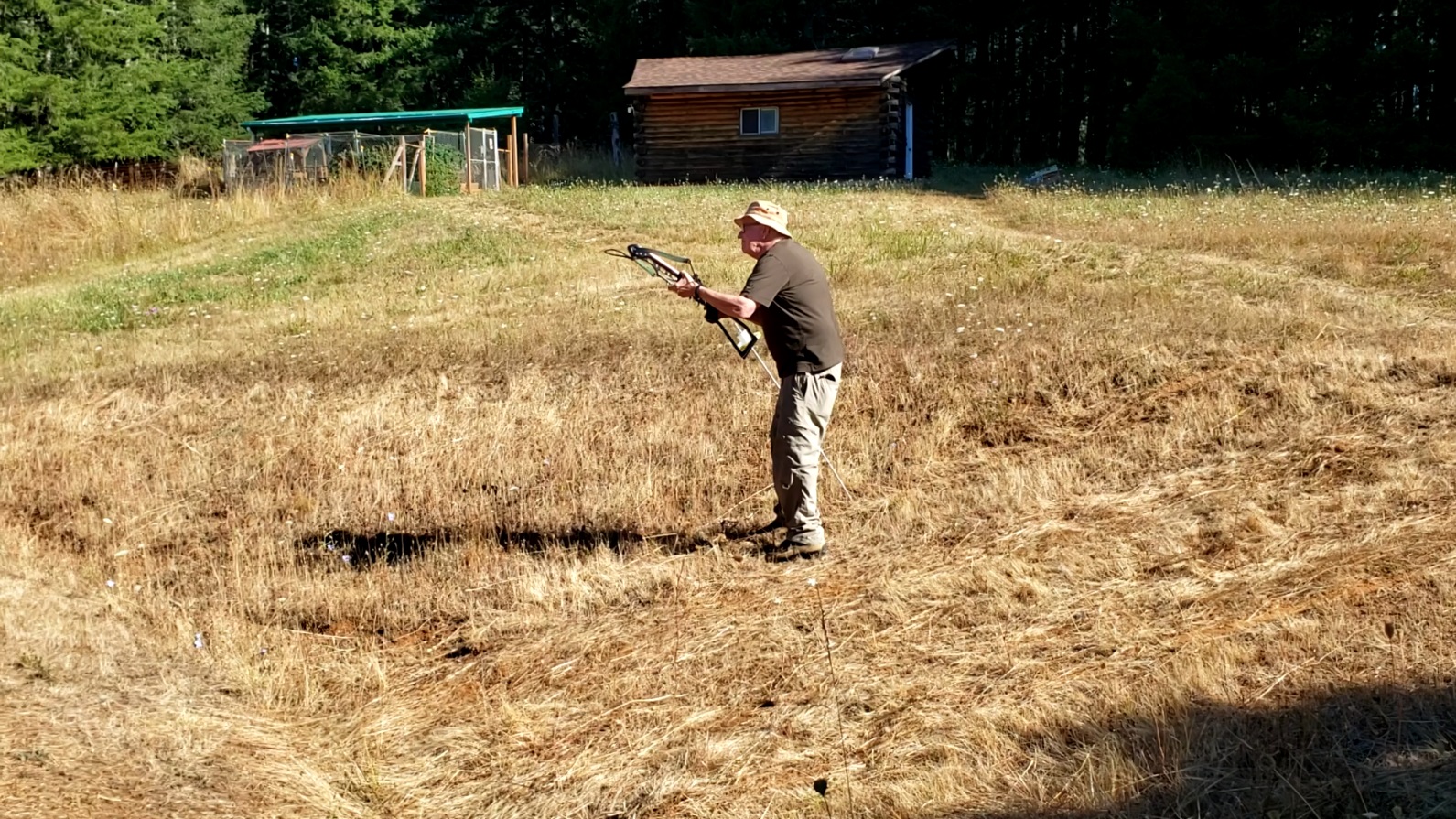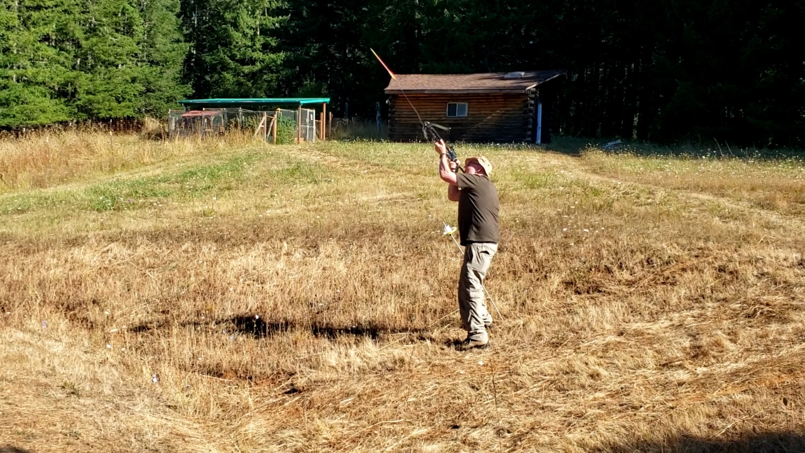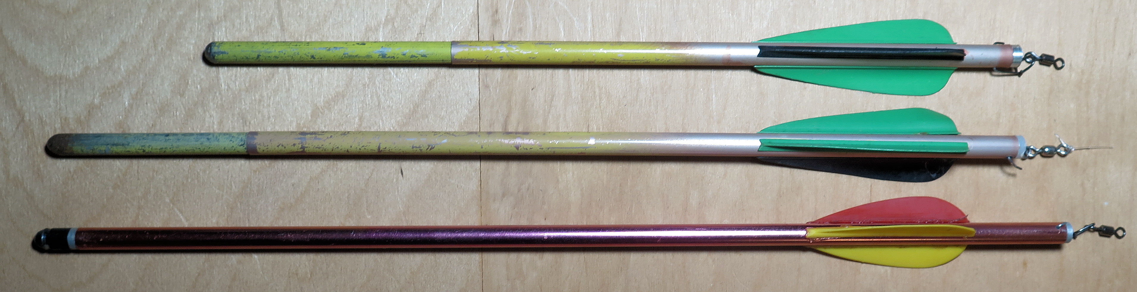 Dee has a swivel on a blunt weighted arrow attached to the fish line.