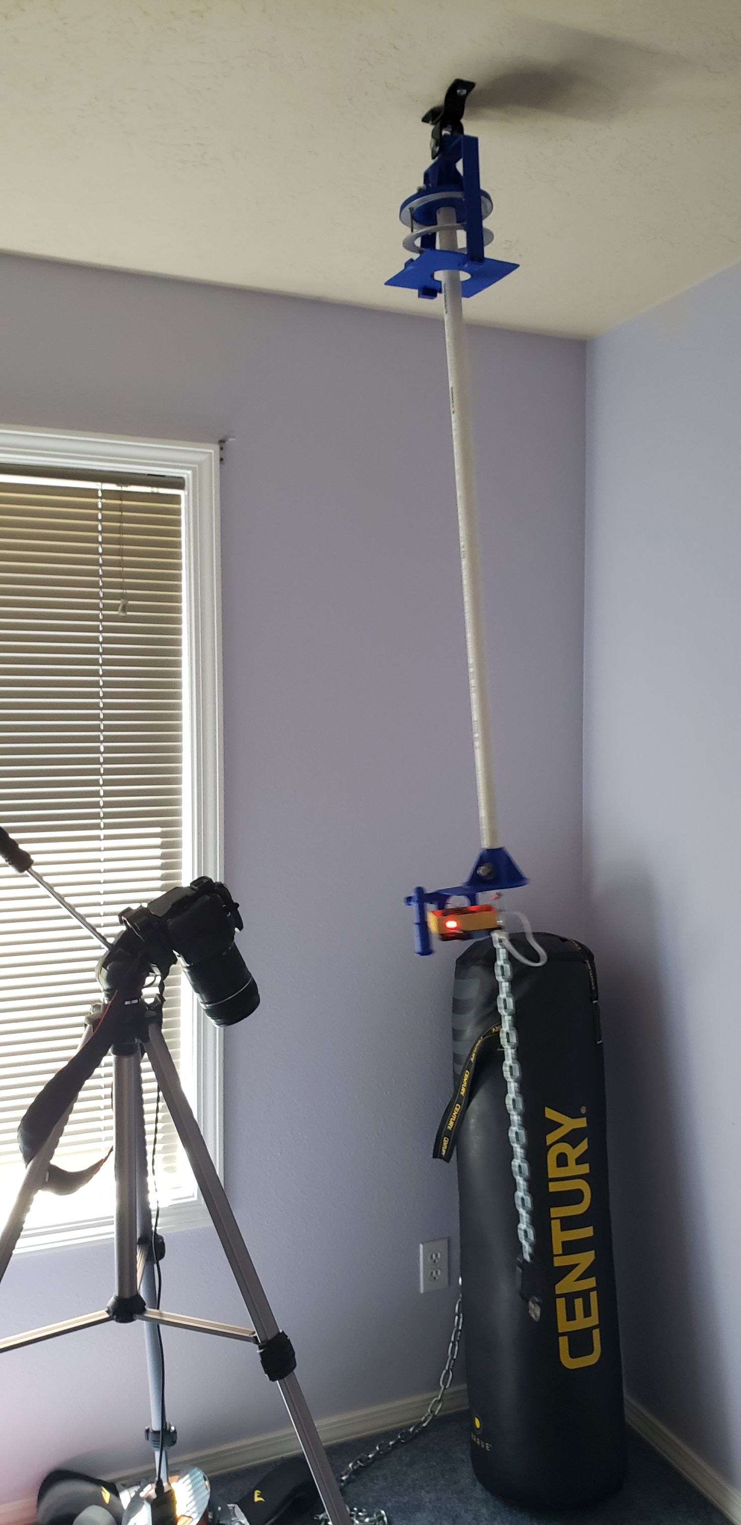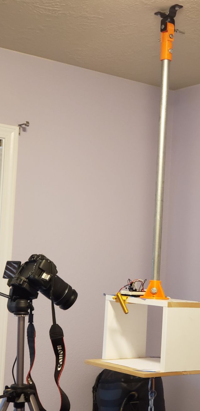This project shows a whole new way to create spiralling art. We examined all the pendulum art videos on YouTube and felt there is yet another way. The art produced by the pendulum inks and paints are beautiful and creative, but one needs a large area dedicated to and accepting the splattering of paint everywhere. Welcome to the Spirograph. Our technique uses a pendulum like structure hanging from the ceiling, a laser, and a camera. A new and unique picture gets drawn in 1 to 2 minutes and the results are immediate. The image can be printed, copied, and distributed without waiting for the paint to dry. The best off all worlds. | ||